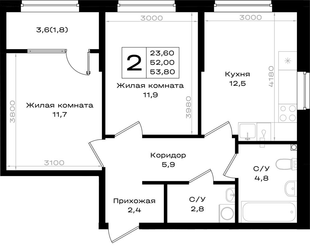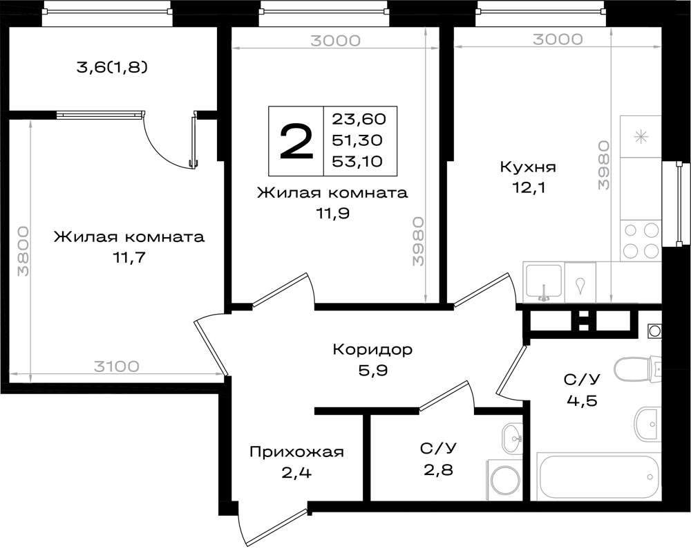 Продажа двухкомнатной квартиры в новостройке в Аксае 51-100 кв.м.