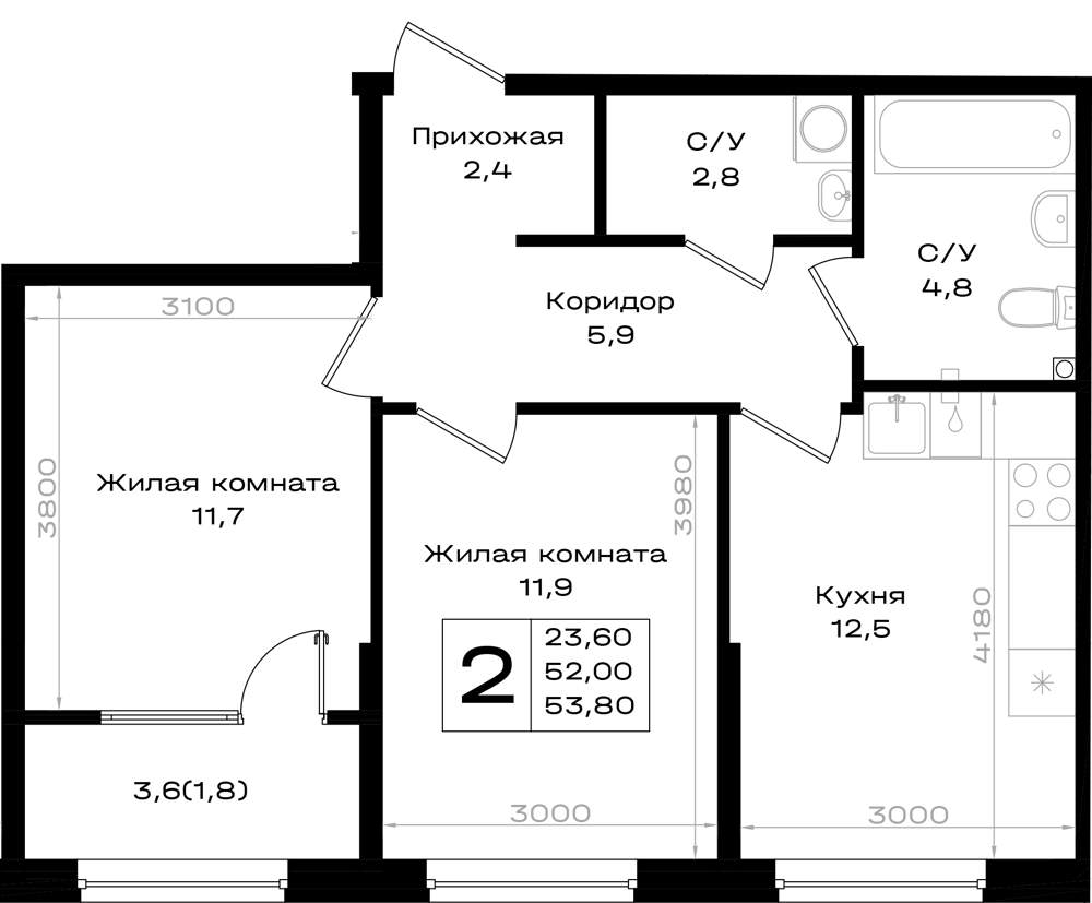 53.8 м2
