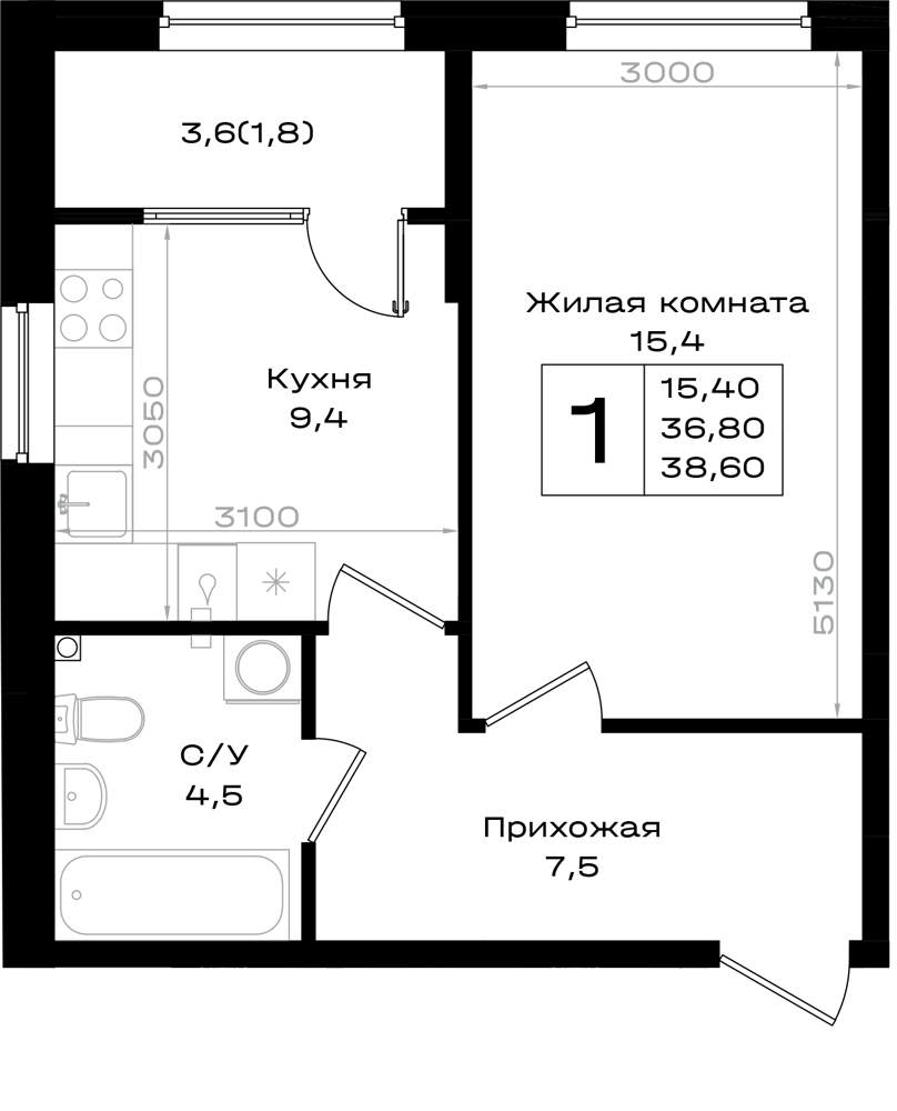 38.6 м2