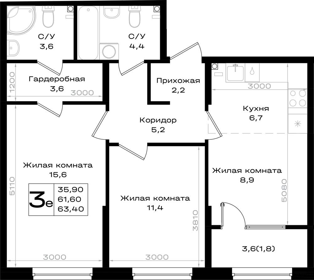 Продажа трехкомнатной квартиры в новостройке в Аксае от собственника