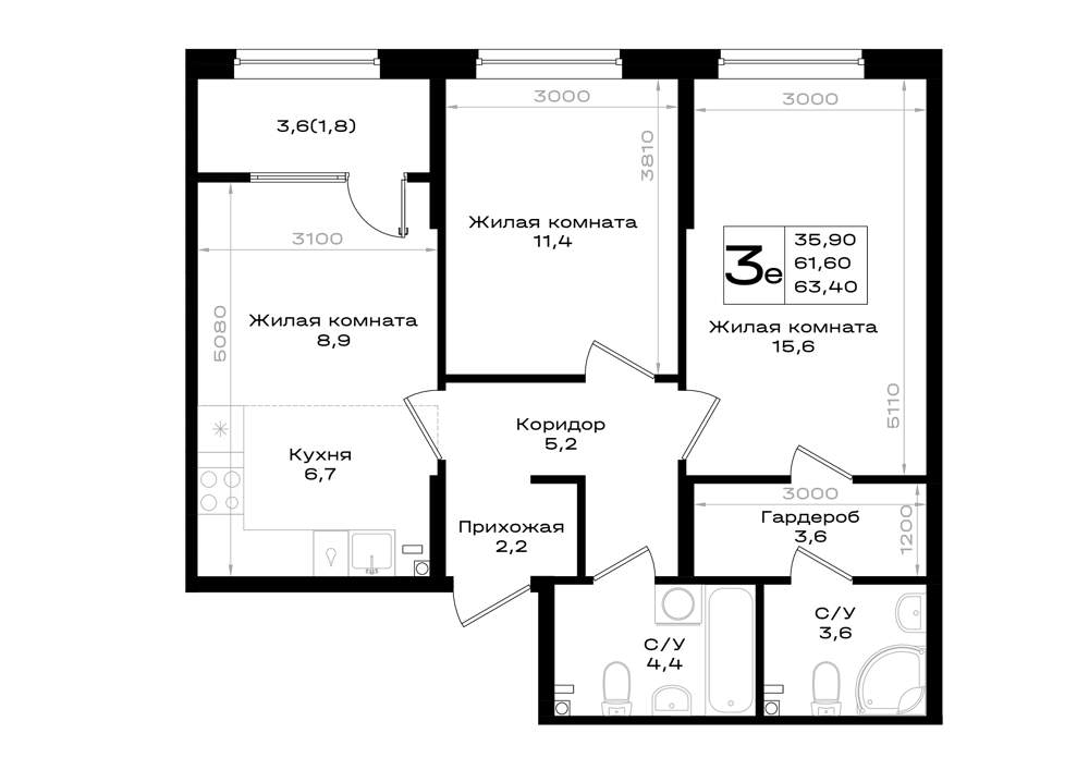 Продажа трехкомнатной квартиры в новостройке в Аксае от собственника