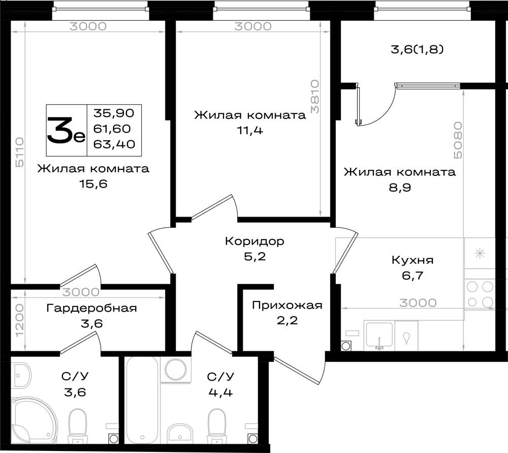 Продажа трехкомнатной квартиры в новостройке в Аксае от собственника