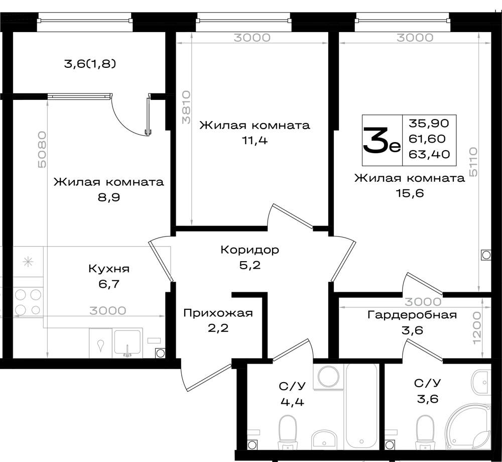 Продажа трехкомнатной квартиры в новостройке в Аксае 51-100 кв.м.