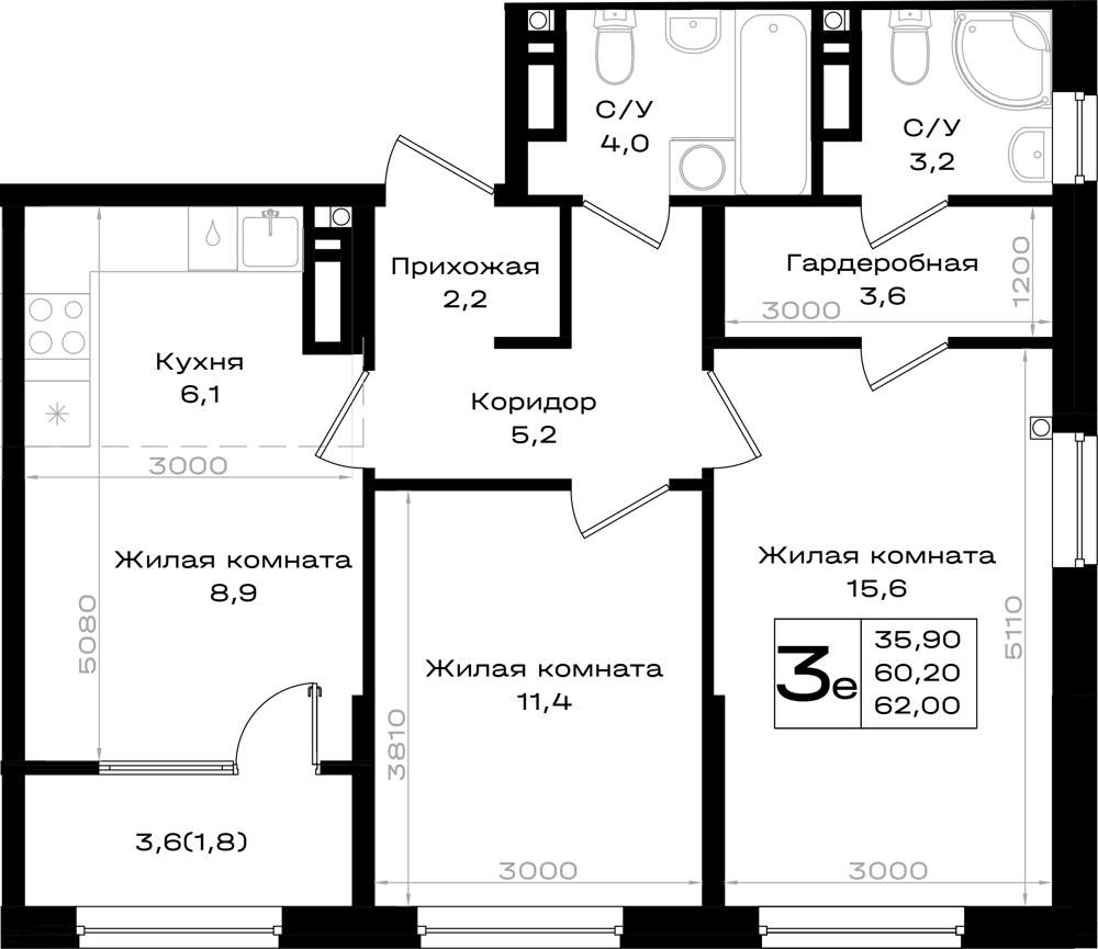 Продажа трехкомнатной квартиры в новостройке в Аксае 51-100 кв.м.