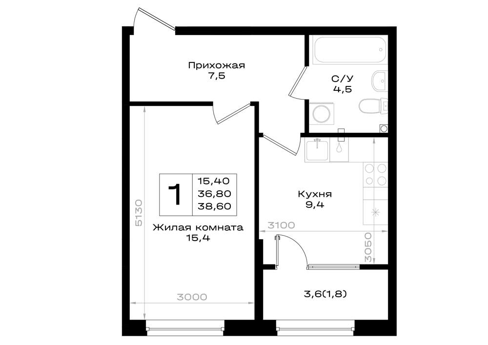 38.6 м2